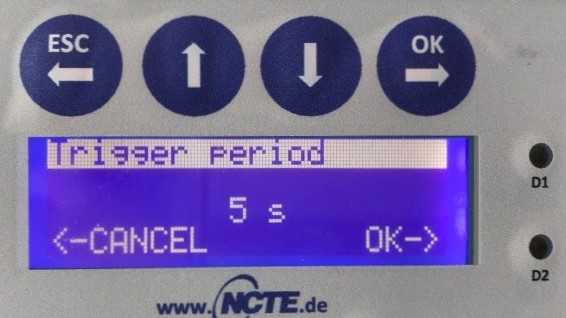 按OK鍵進入Trigger period里面,按上下鍵設置時間為5~10s(可根據(jù)測試間隔設定)按OK確認